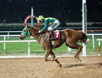2 yaşlı İngiliz taylarının birincilik mücadelesi verdiği koşu, 1500 metre mesafe üzerinden kum pistte koşuldu.