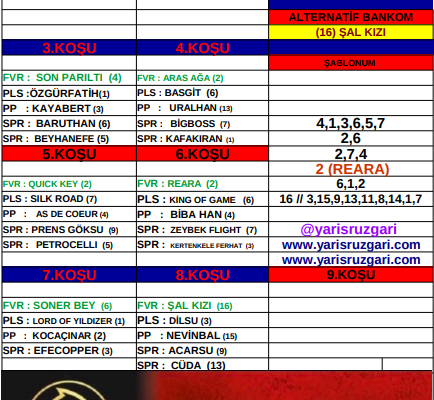 06 Nisan Cuma Bursa Yarışları // Çizelge ve Şablon